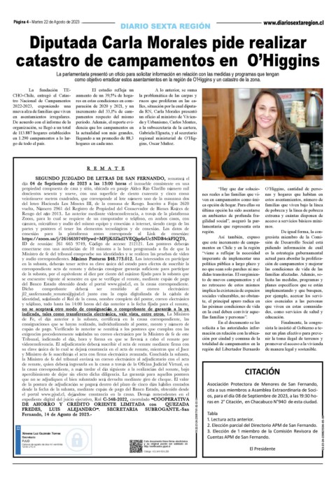 PJUD F Fernando, 14 de Agosto de 2023.- . - 1. Lectura acta anterior.