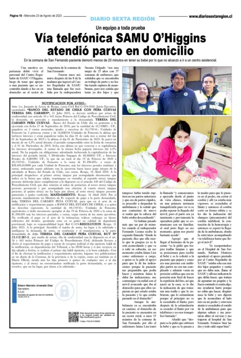 notificaci n y requerimiento pague a BANCO DEL ESTADO DE CHILE, o a quien A S , R U T N° segunda llamada “donde la bastante ayuda”. la estuvimos acompañando