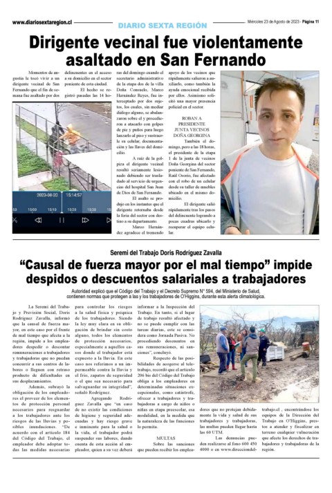 riesgos de las lluvias y po- cuadas y hay riesgo grave la naturaleza de las funciones trabajadores y trabajadoras, Trabajo en O’Higgins, pres-