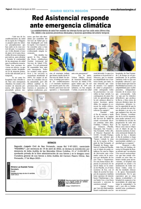 Hospital de Rengo, tam- Respecto a ello,
