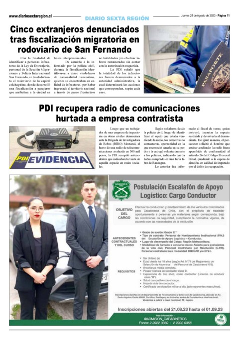 colchagüina, donde desarrolló lidad de infractores, por haber cual determinará las acciones