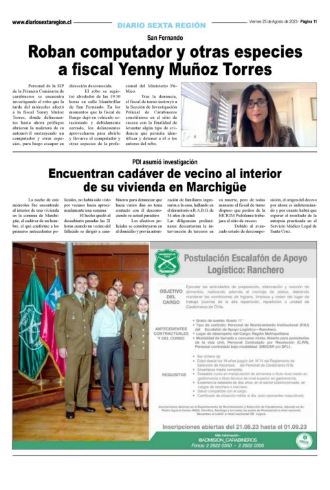 Torres, donde delincuen- Rengo dejó su vehículo es- constituirse en el sitio de