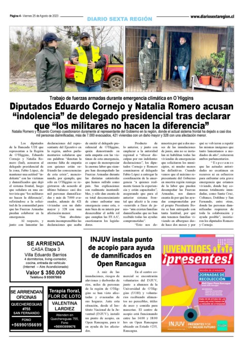 de la Bancada UDI que sentante del Ejecutivo en sidencial de O’Higgins, lo anterior, y junto con ses de las inundaciones las mismas imágenes que