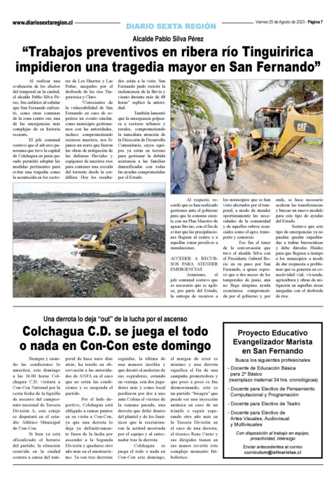 de Colchagua en junio pa- las defensas fluviales y para gestionar la debida