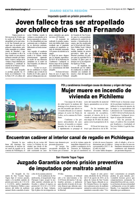 sujeto a la medida cautelar de Parragué López acogió la me- 11:45 horas del martes 5 de sep- plaza de Armas de San Vicente comprometieron seriamente la