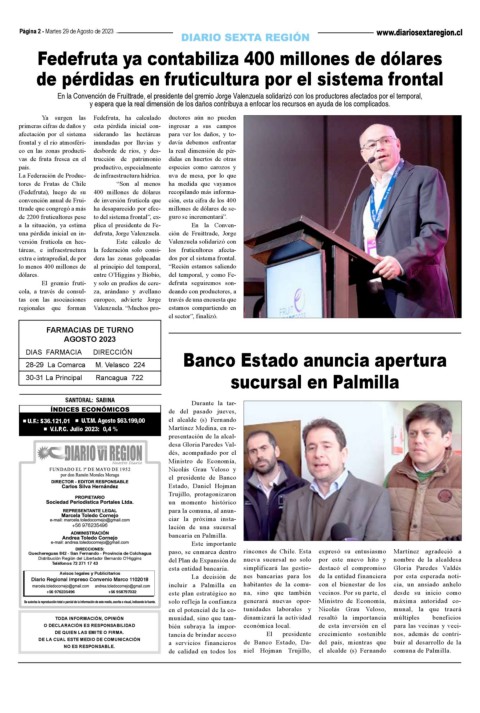 dólares. entre O’Higgins y Biobío, del temporal, y como Fe-