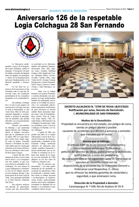 Logia colchaguina se constituye tinamente ha ido quedando en