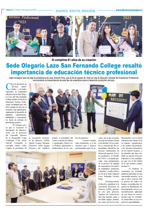 Página 12 - Jueves 31 de Agosto de 2023 www.diariosextaregion.cl