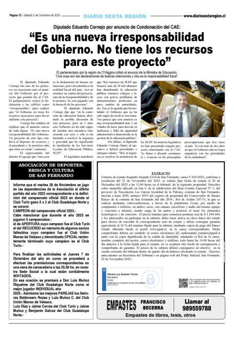 fallecidos cuyo campéon fue el Club Unión comprobante deberá ser remitido al correo electrónico jl2_sanfernando_remates@pjud.cl