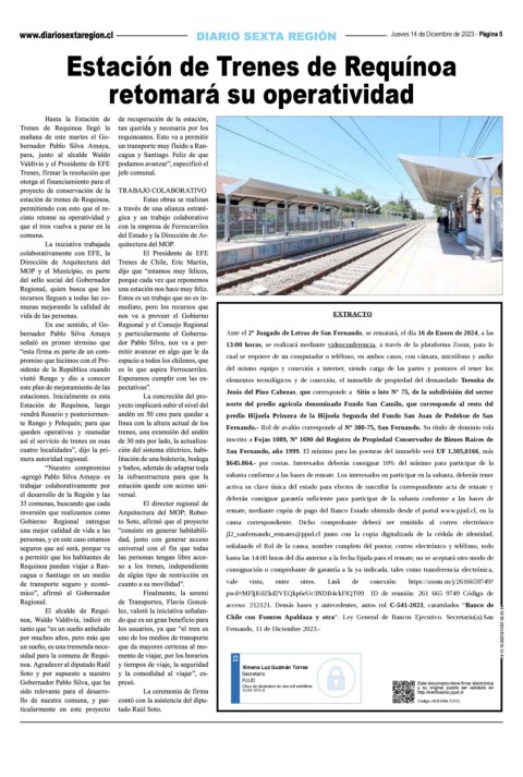 Ante el 2º Juzgado de Letras de San Fernando, se rematará, el día 16 de Enero de 2024, a las