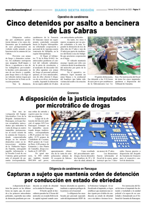 rección poniente. a nadie, logrando la detención víctima del asalto a la estación de ayer jueves por carabineros quedaron a disposición del