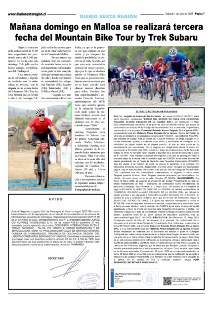 a cabo a este domingo 2 de cho entusiasmo a la tercera mentó Gonzalo Aravena, EXTRACTO NOTIFICACION POR AVISOS