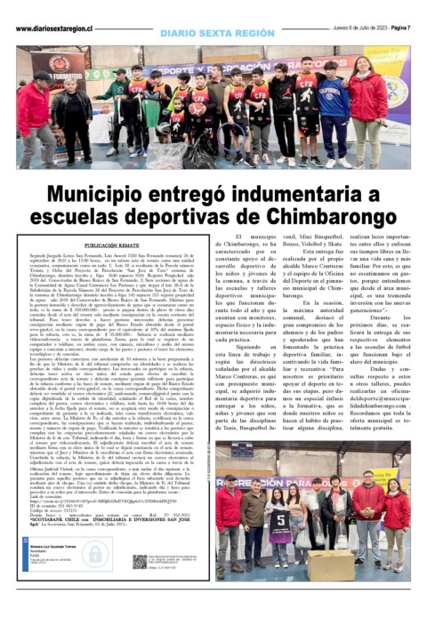 S SpA La Secretaria.-San Fernando, 03 de Julio 2023.- ó con presupuesto muni- apoyar el deporte en to- u otros talleres, puedes