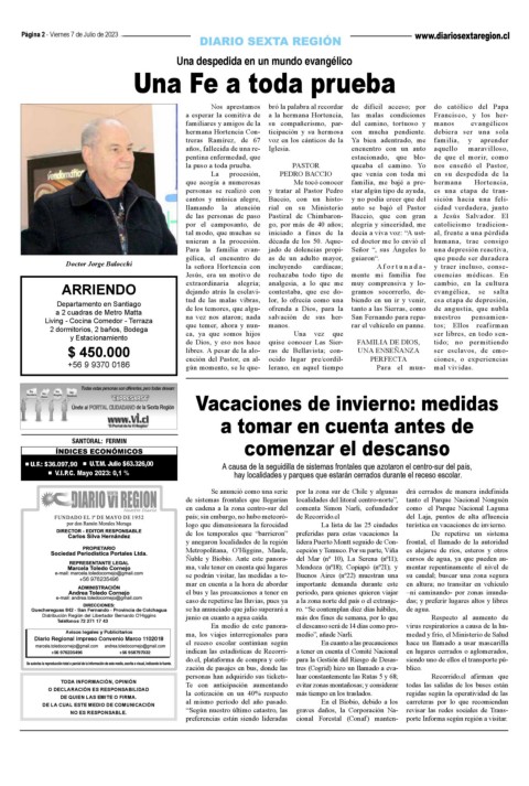 U.F.: $36.097,90 U.T.M. Julio $63.326,00 A causa de la seguidilla de sistemas frontales que azotaron el centro-sur del país,