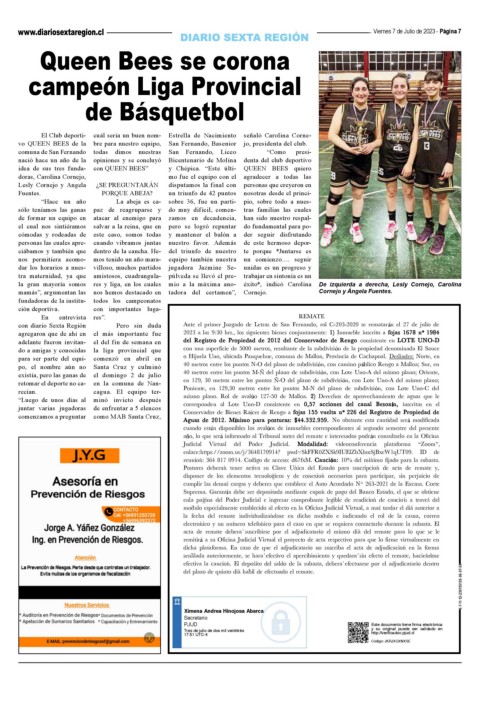 con diario Sexta Región Pero sin duda reunion: 364 817 0914. Codigo de acceso: d67fxM. C Cauci n: ó n : 10% del minimo fijado para la subasta.