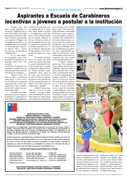 Rancagua, Santa Cruz y San de diversas materias tanto lega- El futuro carabinero,