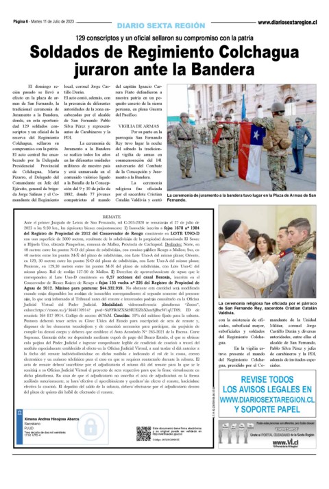 del plazo de quinto dia habil de efectuado el remate. 6-7-11-12-230705105-06-07-08 WWW.DIARIOSEXTAREGION.CL