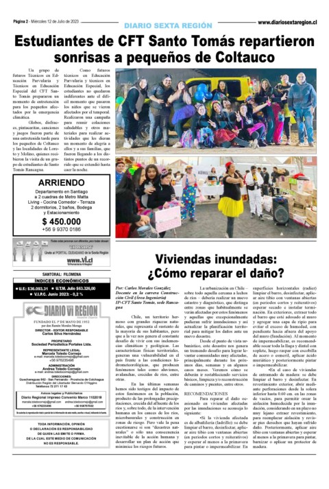 V.I.P.C. Junio 2023: - 0,2 % Docente en la carrera Construc- sobre todo aquella cercana a lechos limpiar el barro, desinfectar, aplic-