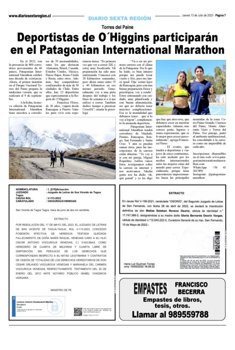 San Vicente de Tagua Tagua, trece de junio de dos mil veintitrés.