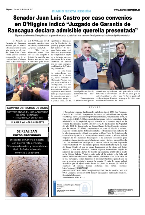 COMPRO DERECHOS DE AGUA eventual suscripción de la correspondiente acta de remate, y, además, deberá