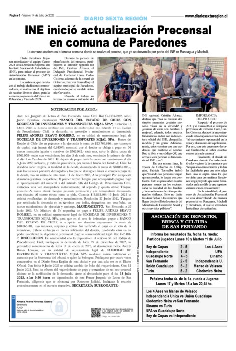 consecutivas en el Diario Sexta Regi n de esta ciudad y por una sola vez en el Diario 12-13-14--18-230711201-02-03-04 San Fernando 2 - 5 Independencia U.