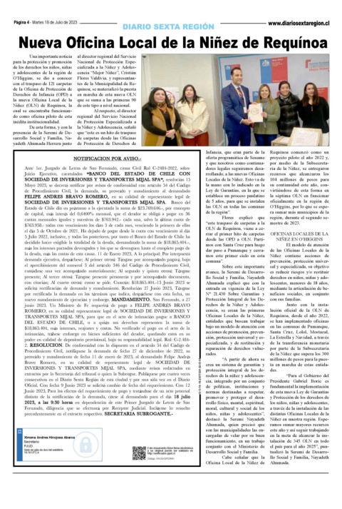 consecutivas en el Diario Sexta Regi n de esta ciudad y por una sola vez en el Diario 12-13-14--18-230711201-02-03-04 cia, integrado por un conjunto Presidente Gabriel Boric es