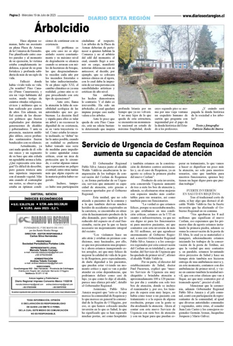 pero genera tristeza ante eventual; entre otras tantas Waldo Valdivia encabezaron la in- les y, en el caso de Requínoa, ya en la atención, no solo para nuestros