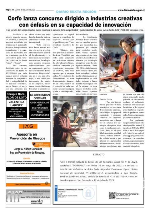 Doce de julio de dos mil veintitrés http://verificadoc.pjud.cl