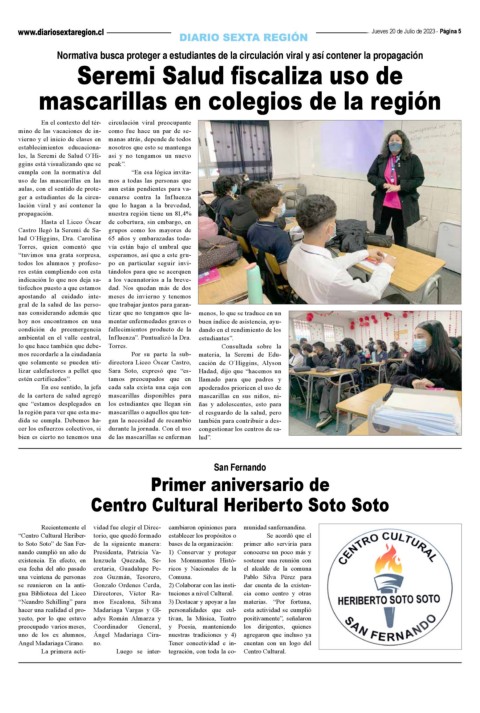 que solamente se pueden uti- directora Liceo Óscar Castro, cación de O´Higgins, Alyson