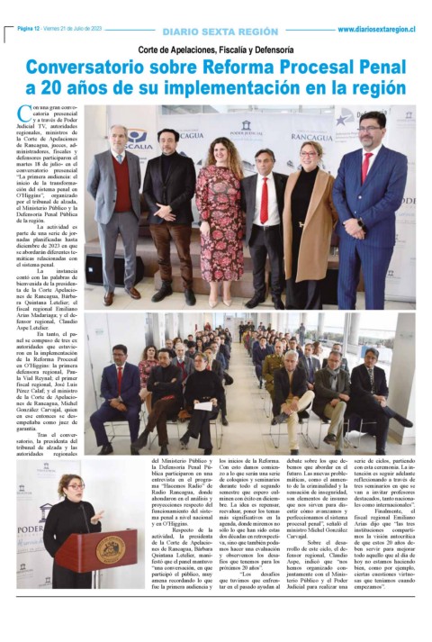 Página 12 - Viernes 21 de Julio de 2023 www.diariosextaregion.cl