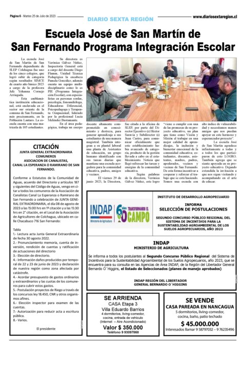 ral de 22 y 23 de junio de 2023 y declaración encuentra para su consulta en las Agencias de Área INDAP, de la Región del Libertador General