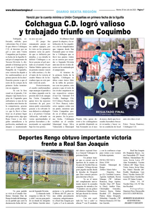 fo que obtuvo Colchagua tre ambos equipos, por res y de los simpatizantes