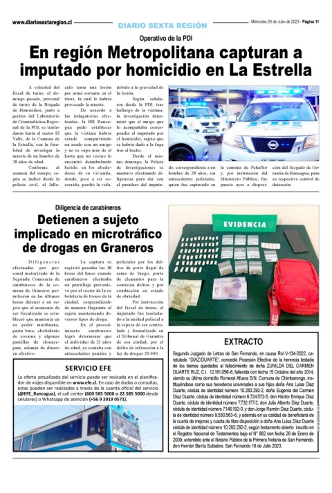 La oferta actualizada del servicio puede ser revisada en el planifica- siendo su último domicilio Romeral Afuera S/N, Comuna de Chimbarongo, ins-