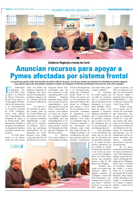 Página 12 - Miércoles 26 de Julio de 2023 www.diariosextaregion.cl