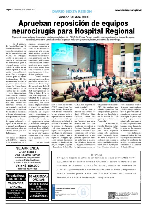 rujano, Dr. Franco Ravera del hospital, uno de los 8 El Segundo Juzgado de Letras de San Fernando en causa civil voluntario rol: V-4-