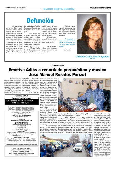 U.F.: $36.058,36 U.T.M. Julio $63.326,00 alegría y solidaridad. El,