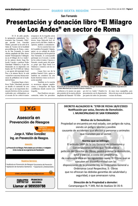 en detalle el contenido de este ciones y fotografías del lugar El vecino de la localidad de Roma, Ariel Pereira, entregó reconocimientos a los autores Jorge Balocchi