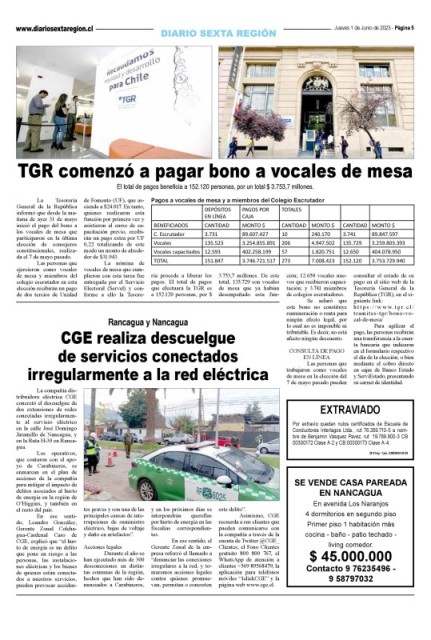 elección recibirán un pago Electoral (Servel) y con- que efectuará la TGR es de mesa que ya habían tación; y 3.741 miembros Tesorería General de la