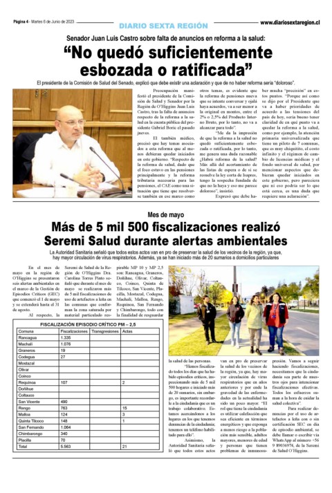 Episodios Críticos (GEC)  de 5 mil fiscalizaciones de  cilla, Mostazal, Codegua,