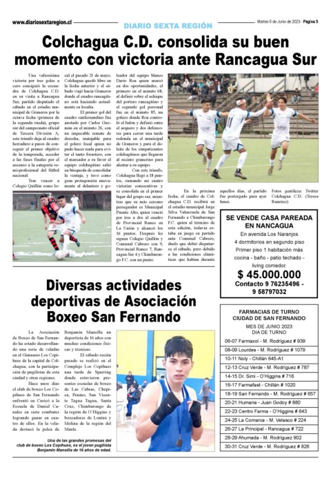 nales en siete combates la región de O´Higgins y 22-23 Centro Farma - O’Higgins # 643