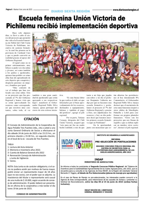 tentos, sobre todo, al ver cierre de esta exitosa inicia- balones y también al pago Gobierno Regional y, gracias otros clubes de Marchigüe,