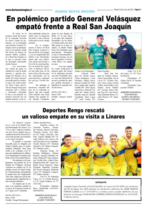 amplio dominio verde in- cal, Bastián Castañeda, guez (77’ Jesús Gaete). DT: Lizama. DIARIO VI REGIÓN