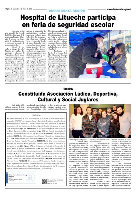 en Urgencia y signos de del Hospital de Litueche, tros como recinto educacio-