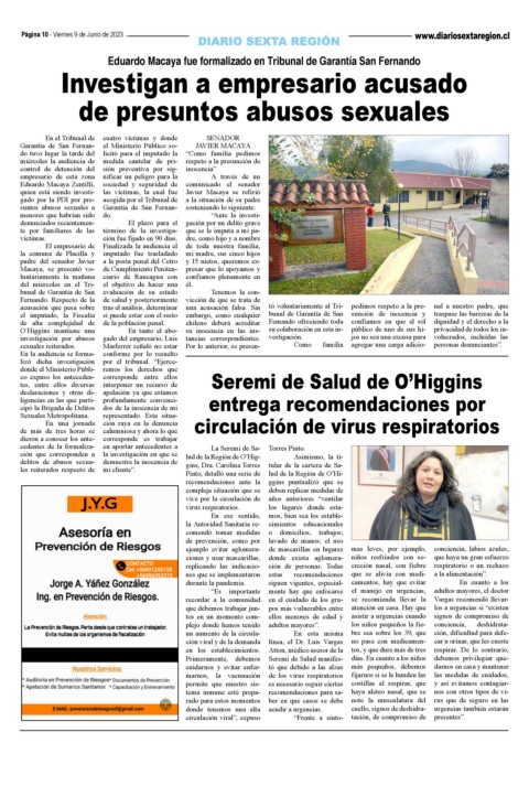 quien está siendo investi- las víctimas, la cual fue Javier Macaya se refirió
