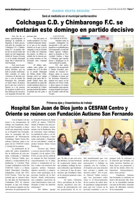 CESFAM Centro y a María espectro autista. Tomamos nera ordenada y que finalmen- el hospital, por una atención salir de las dudas sobre tra-