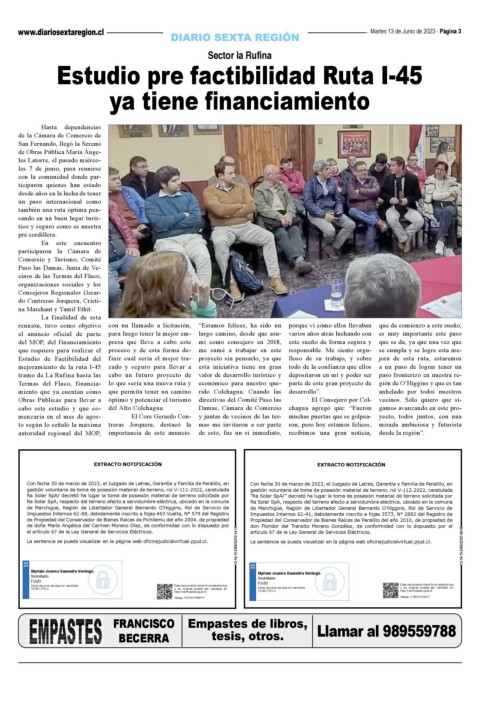 Termas del Flaco, financia- lo que sería una nueva ruta y económico para nuestro que- parte de este gran proyecto de gión de O’Higgins y que es tan