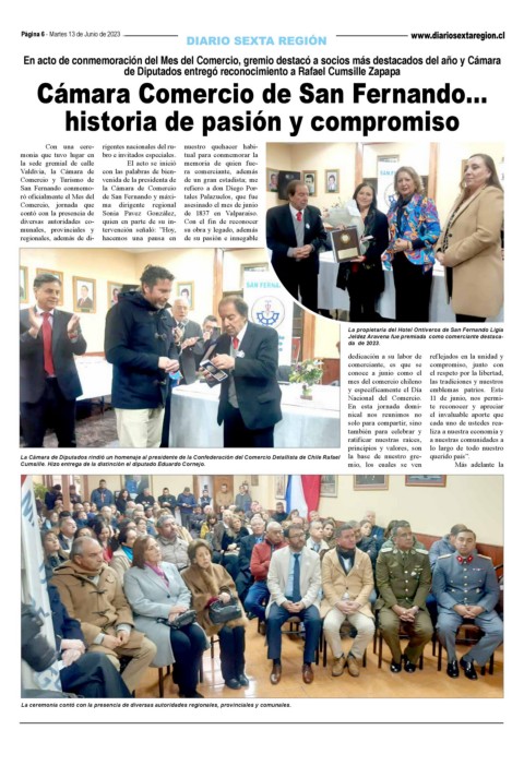 La Cámara de Diputados rindió un homenaje al presidente de la Confederación del Comercio Detallista de Chile Rafael la base de nuestro gre- querido país”.