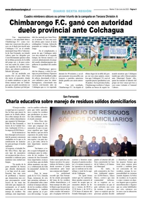 la cancha, el primer gol del par- Colchagua que se vio superado Chimbarongo F.C. ha dejado el Quillón en busca de seguir su- Cabrero.