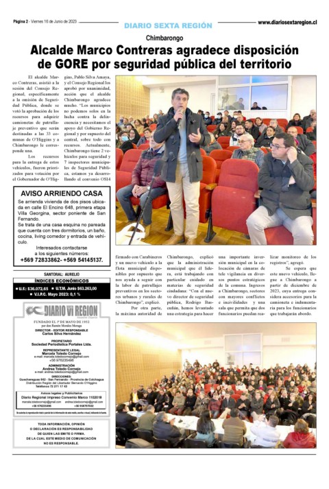 U.F.: $36.072,65 U.T.M. Junio $63.263,00 preventivos en los secto- ciudadana: “Con el nue- a Chimbarongo, sectores 2023, cuya entrega con-