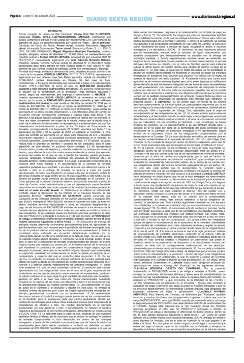 mandato judicial a SUGAL CHILE LIMITADA, sociedad del giro industrial, RUT Nº productos pactada, y dichas negociaciones muchas veces se extienden en